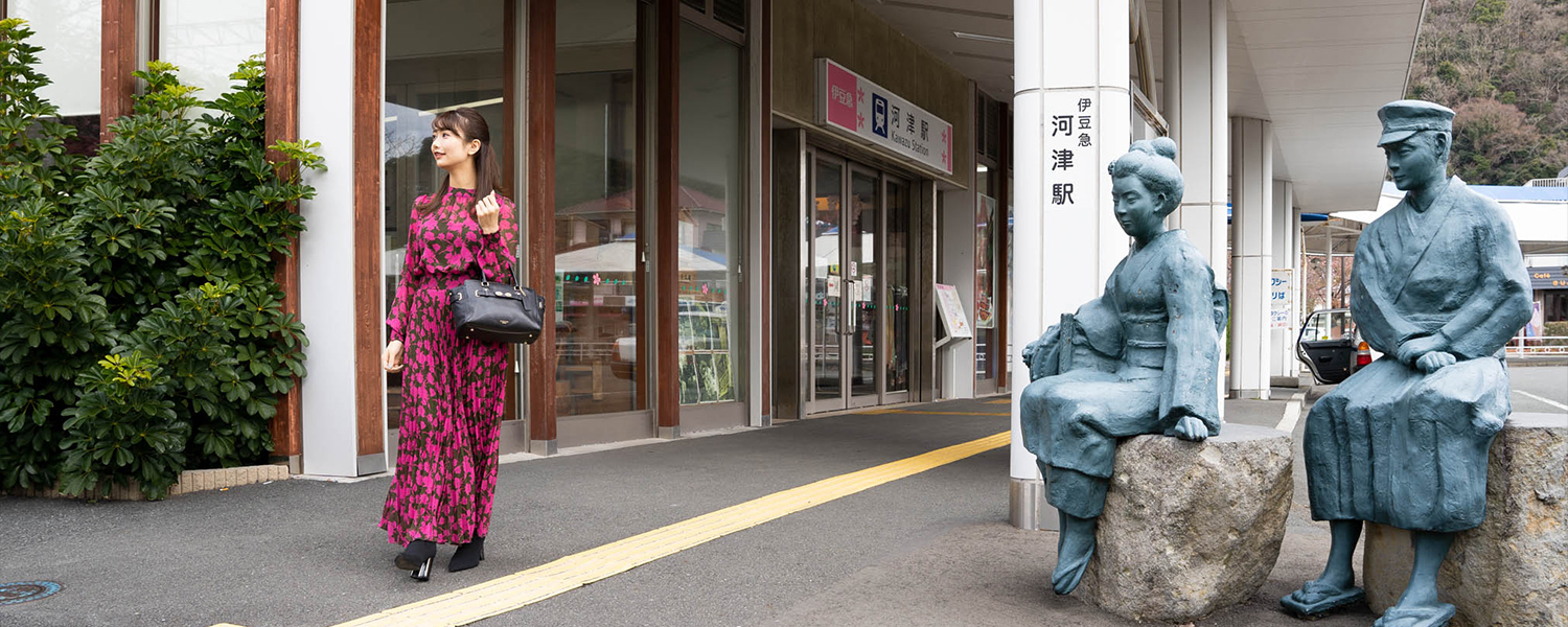 河津駅を出ると伊豆の踊子の像がお出迎え。
